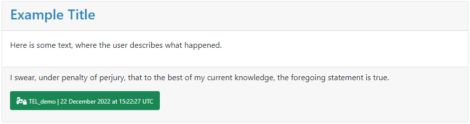TEL re-validates Exhibit signatures whenever they are displayed, using the icon to indicate a successful re-validation (and using to indicate failed re-validation).
